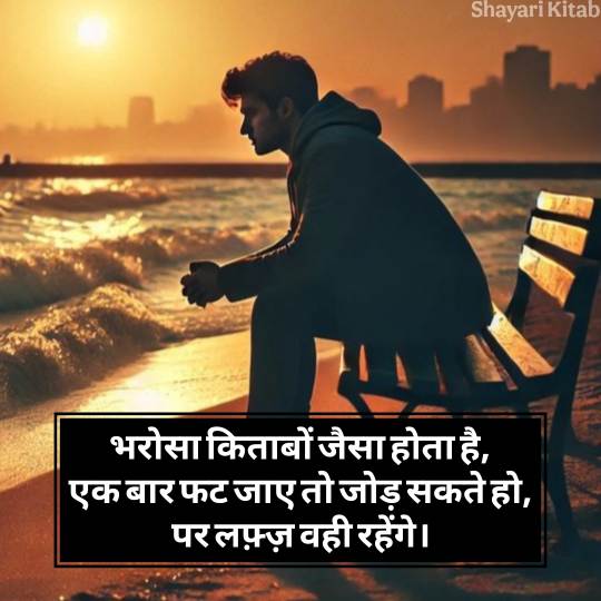 भरोसा एक ऐसा एहसास है जो किसी भी रिश्ते की नींव होता है। जब यही भरोसा टूटता है, तो केवल दिल ही नहीं टूटता, बल्कि आत्मा तक घायल हो जाती है। यही भावनाएँ शायरी के रूप में जब जुबान पर आती हैं, तो वो शब्द नहीं, एक दर्द बन जाते हैं जिसे हर दिल महसूस कर सकता है। भरोसा तोड़ने वाली शायरी उन्हीं टूटे हुए एहसासों की गूंज है, जो किसी अपने के धोखे से पैदा होती है।