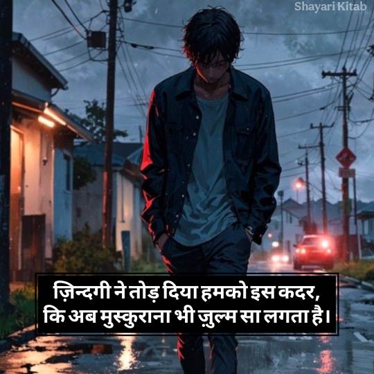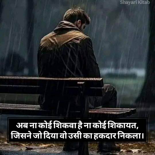 आज के दौर में भी सोशल मीडिया के ज़रिए लोग अपने टूटे जज़्बातों को शायरी के जरिए बयां करते हैं। और यही कारण है कि जिंदगी की दर्द भरी शायरी कभी पुरानी नहीं होती यह हर दौर के दिलों की आवाज़ है। आप इस शायरी को अपने व्हाट्सएप स्टेटस पर जरूर लगाए।