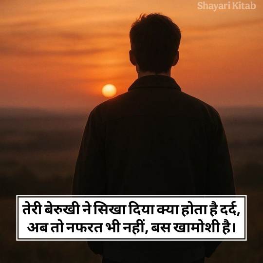 Nafrat Shayari In Hindi का एक गहरा और तीव्र रूप है, जिसमें इंसान की टूटन, धोखा और दर्द की भावना को शब्दों में ढाला जाता है। जब कोई दिल बहुत ज़्यादा टूट जाता है, जब भरोसा ज़ख्म बन जाता है, तब शायर नफ़रत के लफ्ज़ों से अपने जज़्बात बयान करता है। इस तरह की नफरत शायरी हिंदी में प्यार के अंत का दर्द, बेवफाई की टीस और रिश्तों की कड़वाहट झलकती है। यह नफरत शायरी सिर्फ नफ़रत दिखाने का माध्यम नहीं, बल्कि अंदर के घावों की चीख़ भी होती है।